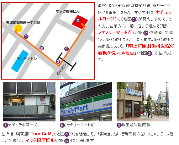 - 東京メトロ有楽町線「銀座一丁目駅」10番出口より徒歩3分